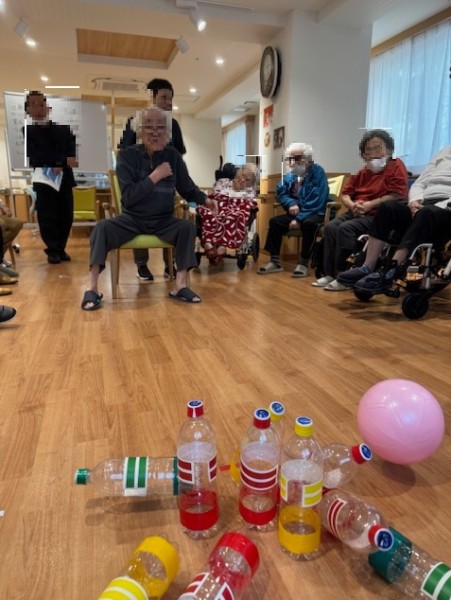 永神館では10月~12月お誕生日の方をお祝いする誕生会を10月末日に開催いたしました。当日はレクリエーションとして、ペットボトルを使用した、